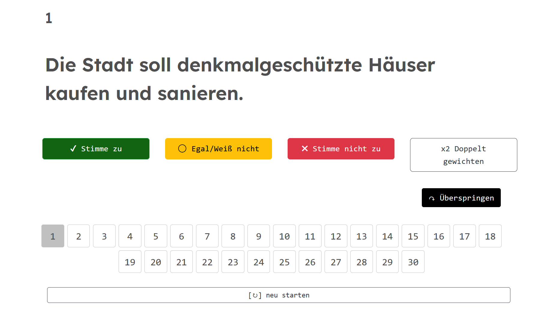 SPD, CDU und FDP haben abgesagt. Ihre Begründungen – fehlende Neutralität, kommunale Unzuständigkeit einzelner Thesen, unausgewogene Themenbalance – sind diskussionswürdige Einwände. Aber sie rechtfertigen nicht die Abwesenheit. Methodische Kritik gehört in den Dialog, nicht in die Verweigerung. Das Instrument bietet für jede These die Möglichkeit, mit „neutral“ zu antworten oder die eigene Haltung im Kommentarfeld zu erläutern. Wer Thesen für unzuständig hält, kann das sagen. Wer die Balance für schief hält, kann das benennen.
